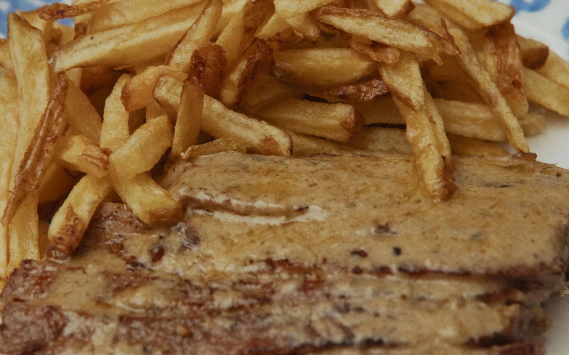 Poi si sceglie la cottura dell’entrecôte accompagnata da patatine fatte in casa e immersa nella nostra salsa segreta.